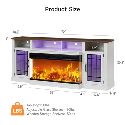 TV STANDS WITH 36" FIREPLACES: The ONBRILL fireplace TV stand combines a 70" TV stand with a 36" electric fireplace, suitable for TVs under 80", and can be used in living rooms, bringing a warm and cozy atmosphere to your home