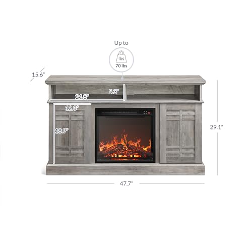 [FIREPLACE TV STAND] Our console cabinet includes an 18" electric fireplace so you can enjoy cozy warmth without the smoke and ash. The 120 V, 1400 W fireplace can warm up spaces up to 400 square feet and measures 18"L x 5.07"W x 17.17"H.