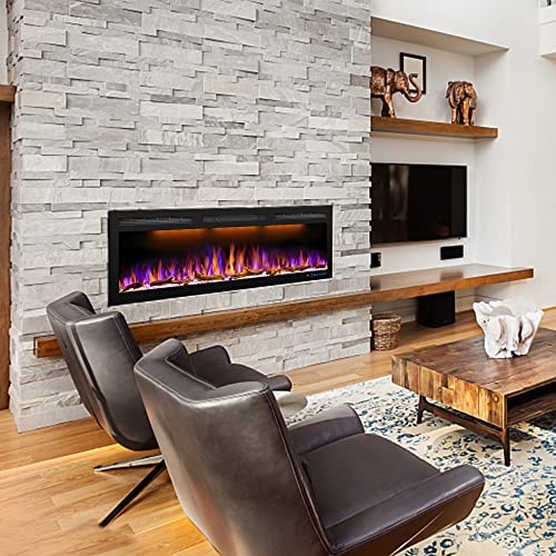Easy Installations: This electric fireplace inserts had can be hung on the wall or embedded in the wall or mantel. With the thin frame of the fireplace, it is very space-saving and suitable for the most location indoor. The bracket for wall mounted comes with the fireplace, it should be removed off when be recessed in wall.