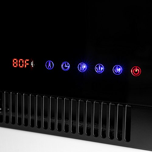 Features | A quiet, front fan-forced heater has a times and easy-to-adjust digital settings for even heat distribution. Enjoy the warm glow of the flames all year with the no-heat option. Or, use included quartz crystals for a different look. Safety protection includes automatic shut-off to prevent overheating. Unit is ventless, odorless, and smokeless. Safe for the elderly, kids, and pets.