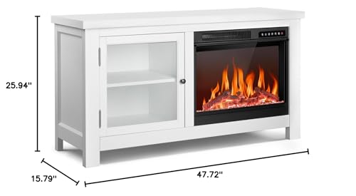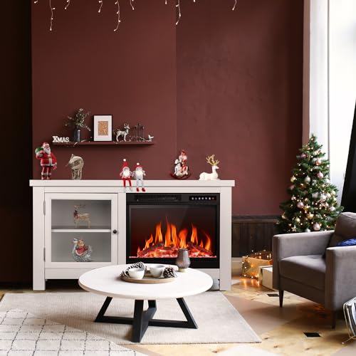 Combine a mantel with a electric fireplace.It is not only an electric fireplace,but also a TV stand with a fireplace mantel,which can be used as an indoor heater and a furniture decoration.The 48'' electric fireplace can accommodate TVs up to 60'',providing a comfortable viewing experience while maintaining TV stability.The Fireplace mantel with a remote control,so you can easily adjust the flame effect and the heat of the unit from virtually anywhere in your room.