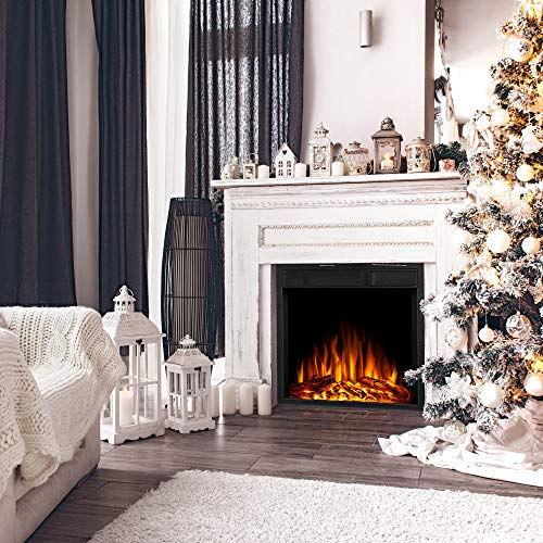 Realistic Flame Effects: Life-like resin logs and a glowing ember bed with realistic flame technology,7 flame brightness's adjustment.