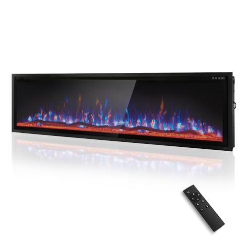 ?High Power & Safe Heater? The linear electric fireplace is ETL certificate-approved. Its 750W/1500W front air heating system is more flexibly effective in warming room(60-86°F Thermostat) and heating area up to 400 sq ft. Adapting a linear integrated design with slim air inlet and outlet openings can ensure efficient heat distribution and air circulation