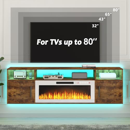 Ample Storage Space: The tv stand features 2 enclosed cabinets, each with adjustable shelves that provide great storage convenience and ample storage space for media devices, game consoles, DVDs and accessories. The fireplace tv stand also features cable holes to keep it neat and organized.The fireplace TV cabinet also features cable holes to hide messy cables and keep it neat and organized.