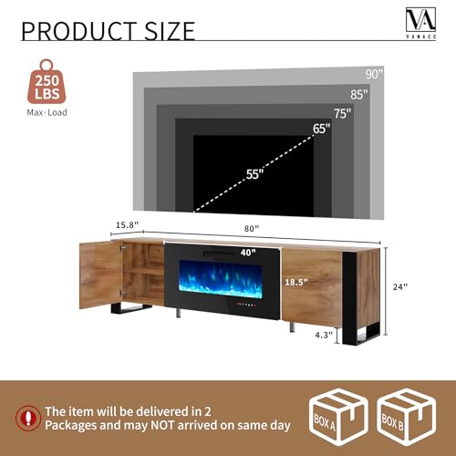 Realistic 40" Fireplace: Transform your space with our 40-inch fireplace, complete with lifelike crystal stones. Choose from 8 different flame colors with fire gradient effect and adjust the brightness across 5 levels to set the perfect ambiance. The LED light strip under the led TV stand has 12 adjustable colors.