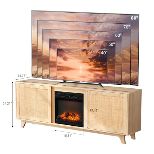 ?Sturdy & Durable?The TV stand has a load-bearing capacity of 220lbs. The frame is crafted from high-quality engineered wood, and the cabinet doors are made from real rattan which has the most strong and durable natural fibers. Plus solid wood legs, this fireplace TV stand is sturdy and durable enough to serve you for a long time