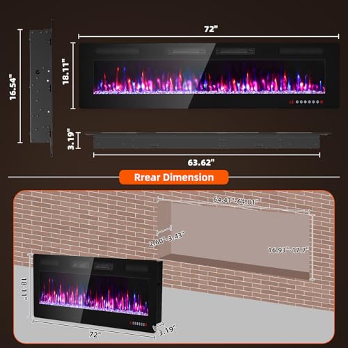 ?Ultra-thin Fireplace?Zionheat slim electric fireplace is only 3.2 inch thick, offers a lovely wall mount or recessed built-in fireplace option to create a comfortable ambiance to any space year-round. Having a trendy black tempered glass surface and a dark, steel frame for easy integration into home design. The improved fireplace would be exactly what you’re looking for to complete family room remodel in 2023!